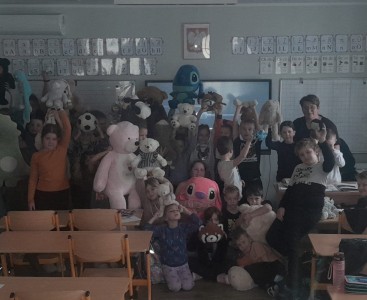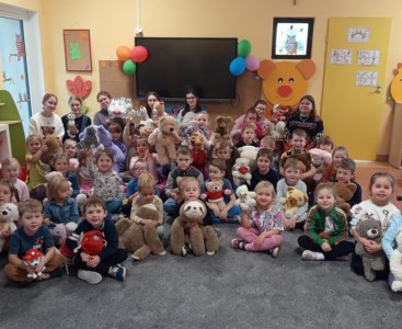 Dla uczniów klas 1-3 ósmoklasiści przygotowali edukacyjną i wciągającą podróż do świata pluszowych bohaterów. Głównym punktem programu była prezentacja multimedialna, która w ciekawy sposób opowiedziała o historii pluszowego misia, jego roli w kulturze i literaturze, a także o słynnych misiach znanych z bajek i filmów. Na koniec wykonano wspólne zdjęcie dzieci z pluszakami.